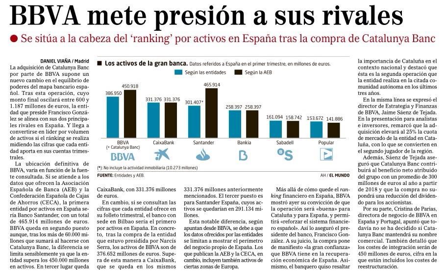 BBVA mete presión a sus rivales / Por Daniel Viaña en El Mundo